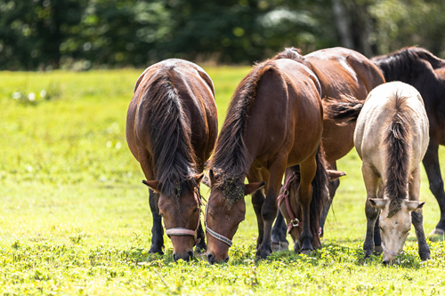 「木曽馬の里、乗馬センター」では、現在約30頭の木曽馬を保護・育成しています。また、こちらでは乗馬や馬車体験ができます。小型でおとなしい性格のため、2~3歳くらいのお子様から引き馬による乗馬体験ができます。「開田郷土館」では木曽馬のふるさと開田高原にふさわしく、馬具や馬の医術書を展示しています。あわせて昔の農具、民具も展示しています。