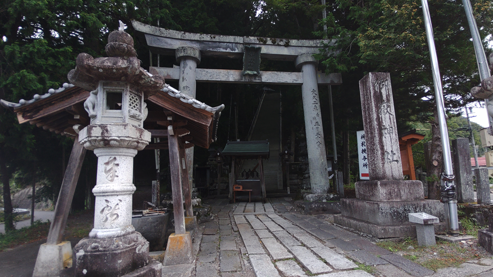 鳥居から檜とサワラの大木を見ながら石段を登ると荘厳な立巌の下に里宮の社殿が建てられています。石段は道路から449段あります。古くは岩戸権現と称され、室町時代後期頃から御嶽三十八社の一社として信仰を集め、江戸時代には御嶽山座王大権現の里社として全国にその信仰が広まりました。毎年10月23日・24日には「御嶽神社祖霊殿慰霊大祭」が開催されています。御嶽信仰では、‘御嶽に生まれ御嶽にかえる’との考えから、御嶽のふもとに「霊神碑」を建てて先祖の霊を慰めます。木曽御嶽本教では碑を造れない信者のため、三岳に「祖霊殿」を建立し、毎年、慰霊大祭を斎行しています。23日の夜の「招魂祭」では、御嶽神社里宮近くの『覚明社』前で先祖慰霊の迎え火をし、家内安全などを祈ります。24日の「合祀祭」では、覚明社から祖霊殿がある『御嶽神社若宮』まで御輿と共に信者の行列が歩き、その後若宮で神事が行われます。